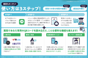 他にも電子お薬手帳、LINEでのお薬相談、オンライン服薬指導などの機能もございます。
